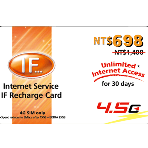 • 遠傳4G上網30天儲值卡698元