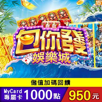購買MyCard《包你發娛樂城》專屬卡1000點成功儲值進遊戲內,可額外獲得加碼虛寶,虛寶內容:包你發點數1040點+道具卡乙張